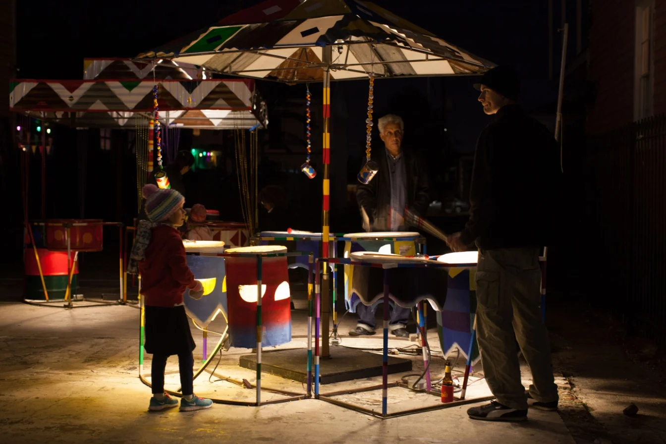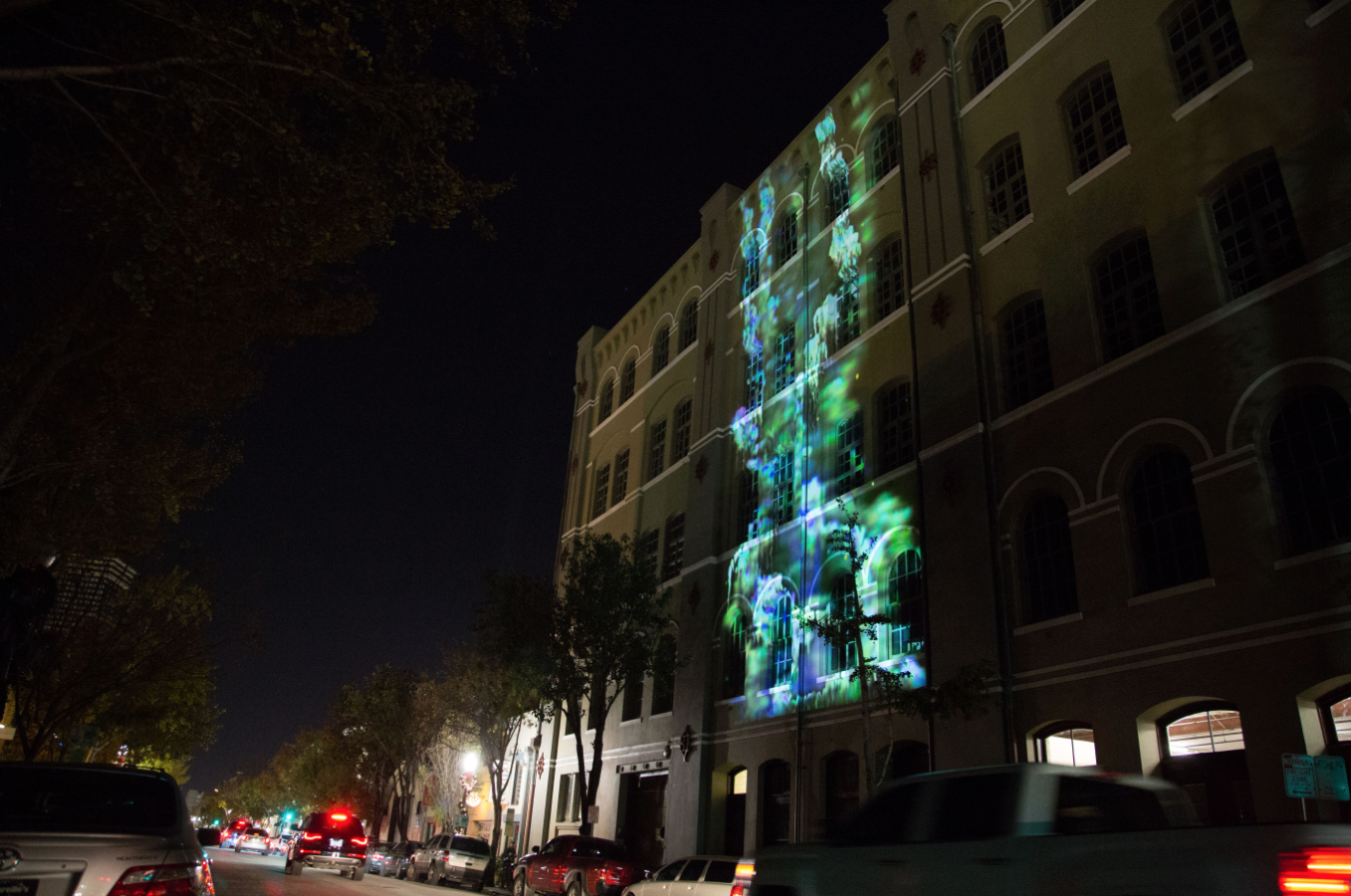 In its second iteration, LUNA Fête expanded to multiple sites across New Orleans, illuminating Lafayette Square, Oretha Castle Haley Boulevard, and Julia Street. This year our signature projection mapping installation took place on Ashe’ Powerhouse Theater. Created by Portugal-based OCUBO, as a collaborative youth production between Ashe Kuumba Institute participants and students from St. Martin’s Academy, the artwork featured youth and their work alongside the artwork of Terrance Osborne in piece celebrating New Orleans culture.