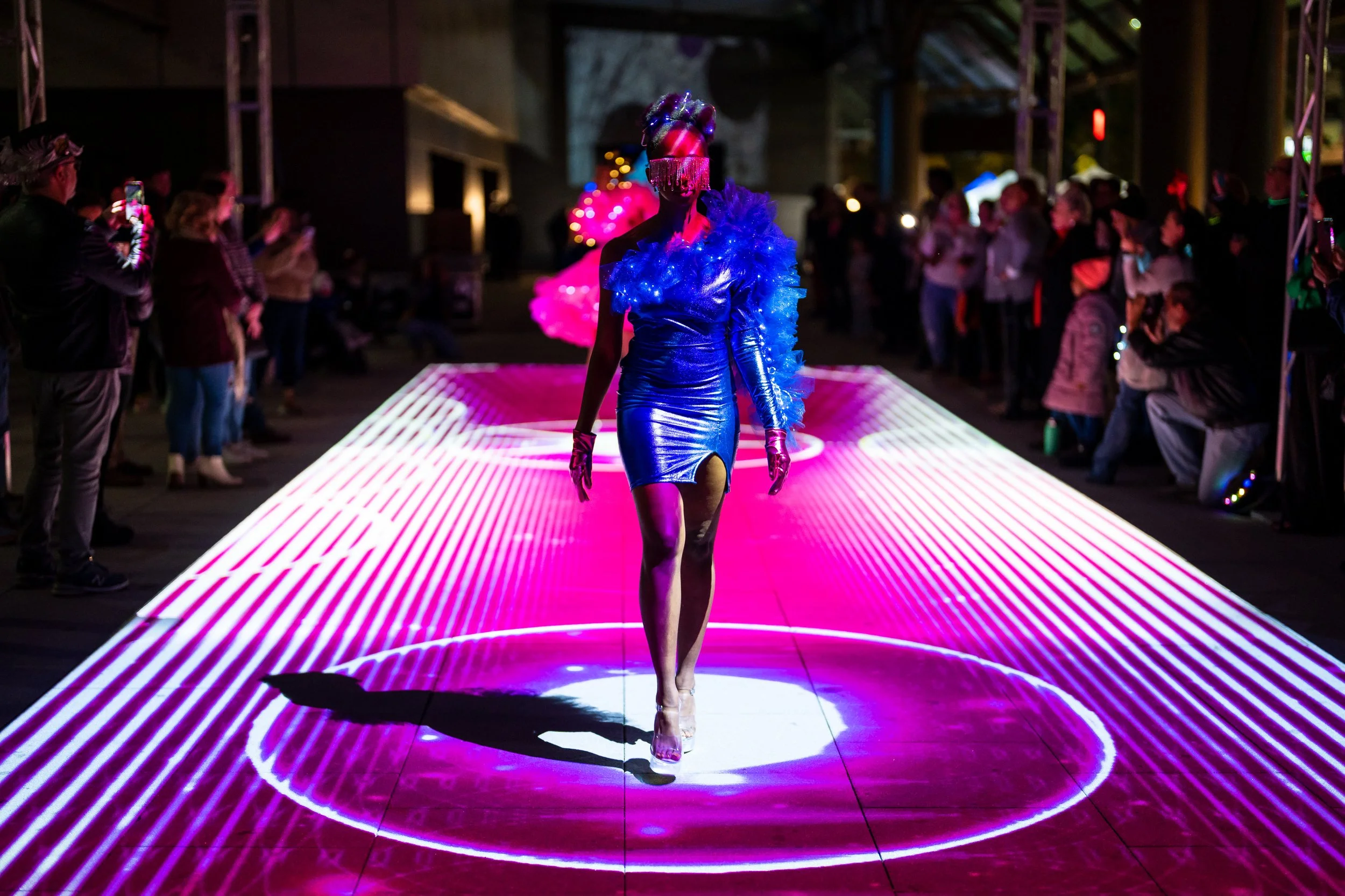 A highlight of the festival’s ninth addition was the interactive projections and premiere of collections by local designers. LUNA Fête transformed the pedestrian park into the ultimate runway for lighted fashion.