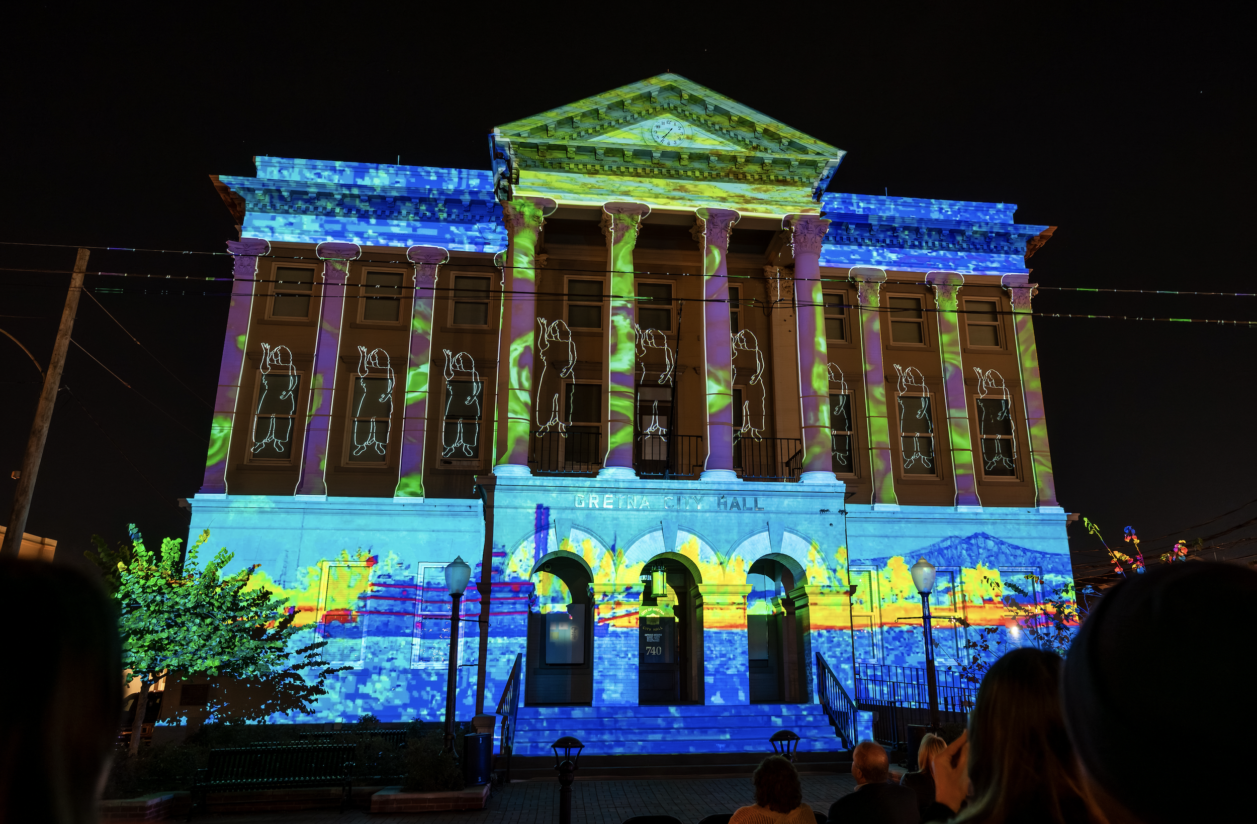 “Inspired by modern European light festivals, Luna Fête blended art with high technology. The focus of the first fest was a dazzling computer animation, depicting the history of New Orleans, tailor-made to be projected on the façade of stately old Gallier Hall. It was a sensation.”