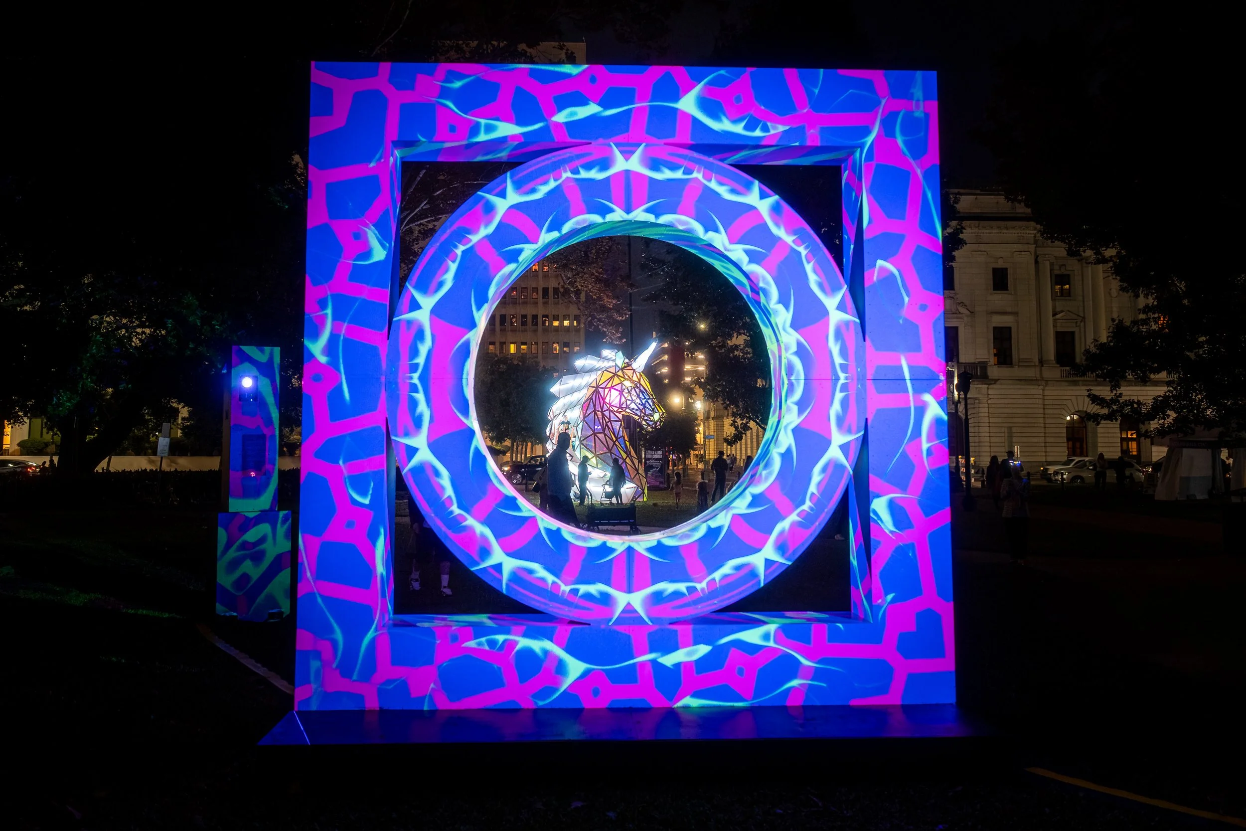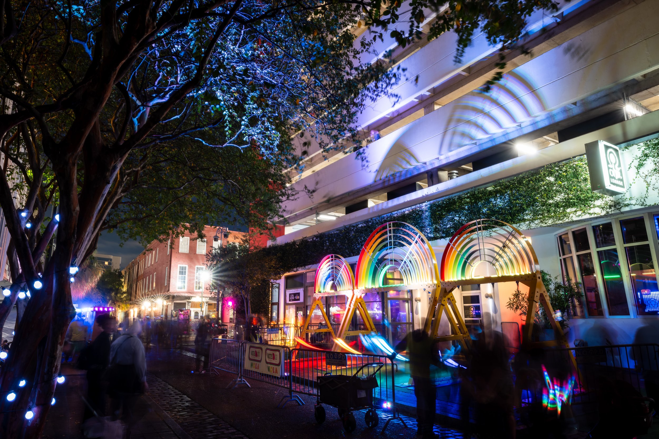 “This annual festival of light, art and technology transforms the area between Gallier Hall and Piazza d’Italia into a playground of light.”