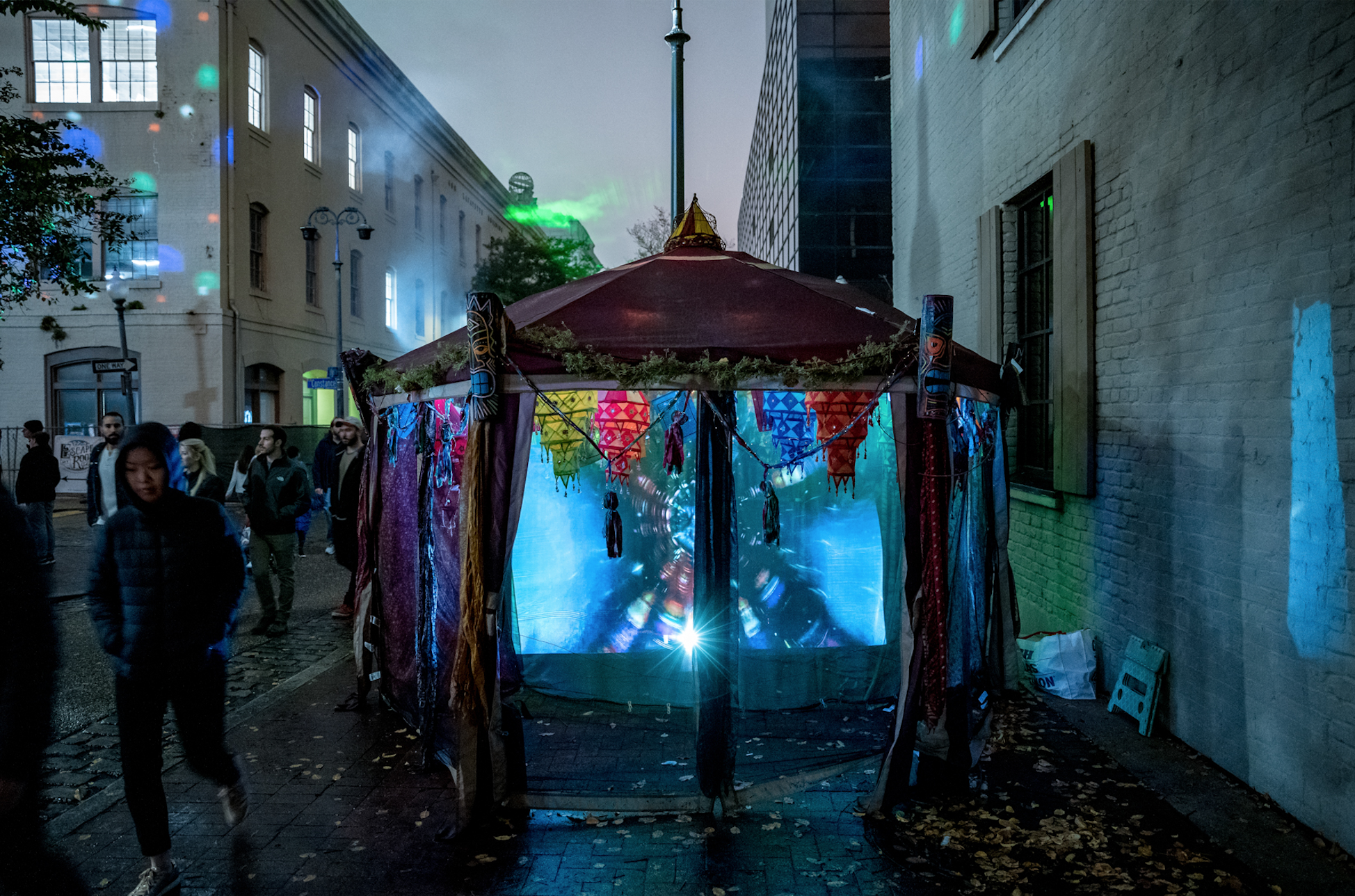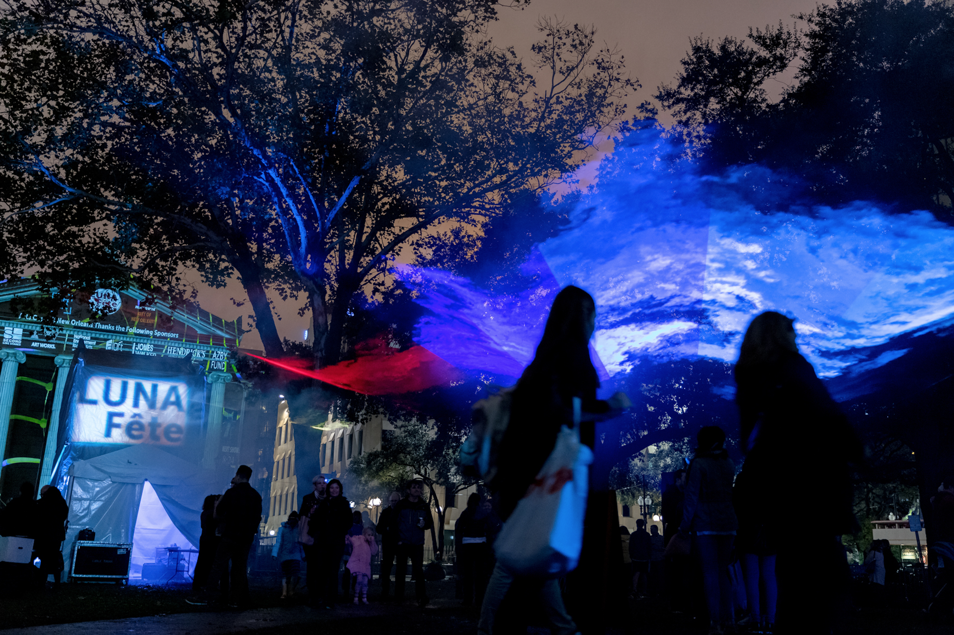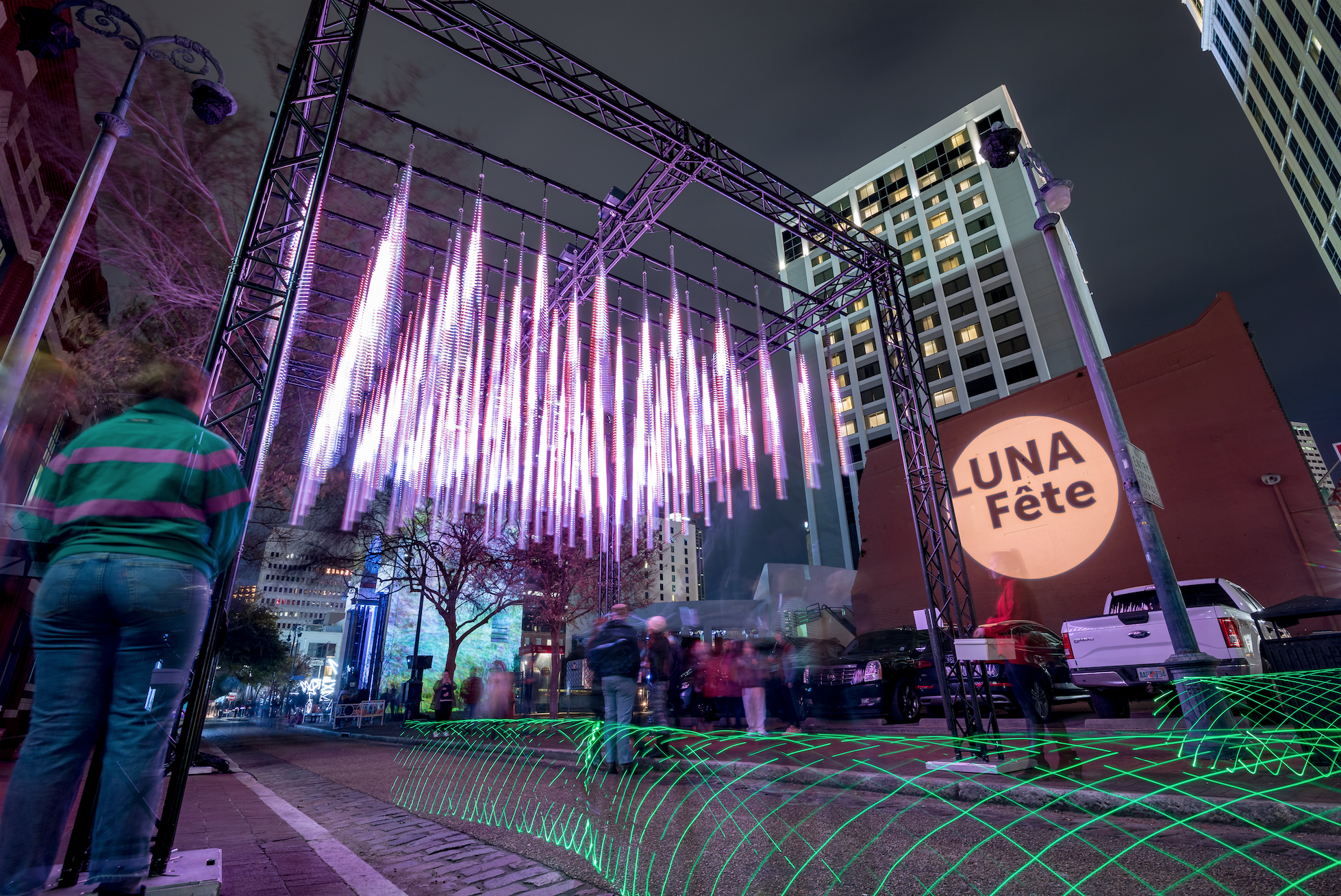 “ Winter brings one last anniversary hurrah with a bigger-and-brighter-than-ever Luna Fête... Think: Lafayette Street covered in swirling laser beams, and colorful shafts and waves of light dancing across the old city hall, a stately nineteenth-century building on St. Charles Avenue. ”