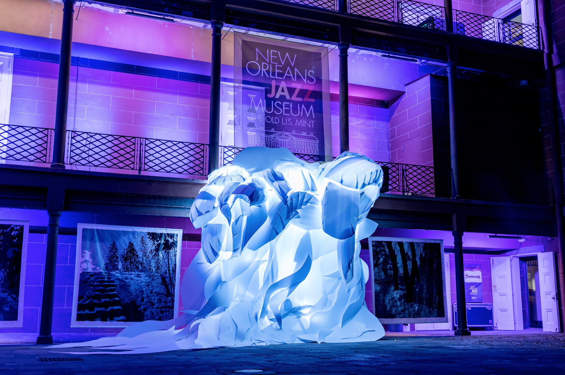 As a Signature New Orleans Tricentennial Event, LUNA Fête 2018 highlighted the local arts community along with New Orleans historic urban landscape. For the first time local artists work was featured on Gallier Hall and the newly re-opened Piazza d’Italia, one of the most significant architectural sites in the city. Additionally, LUNA Fête-inspired permanent LED lighting was unveiled at New Orleans’ Jazz Museum the newest satellite site for the festival, offering year-round illumination of this historic site.
