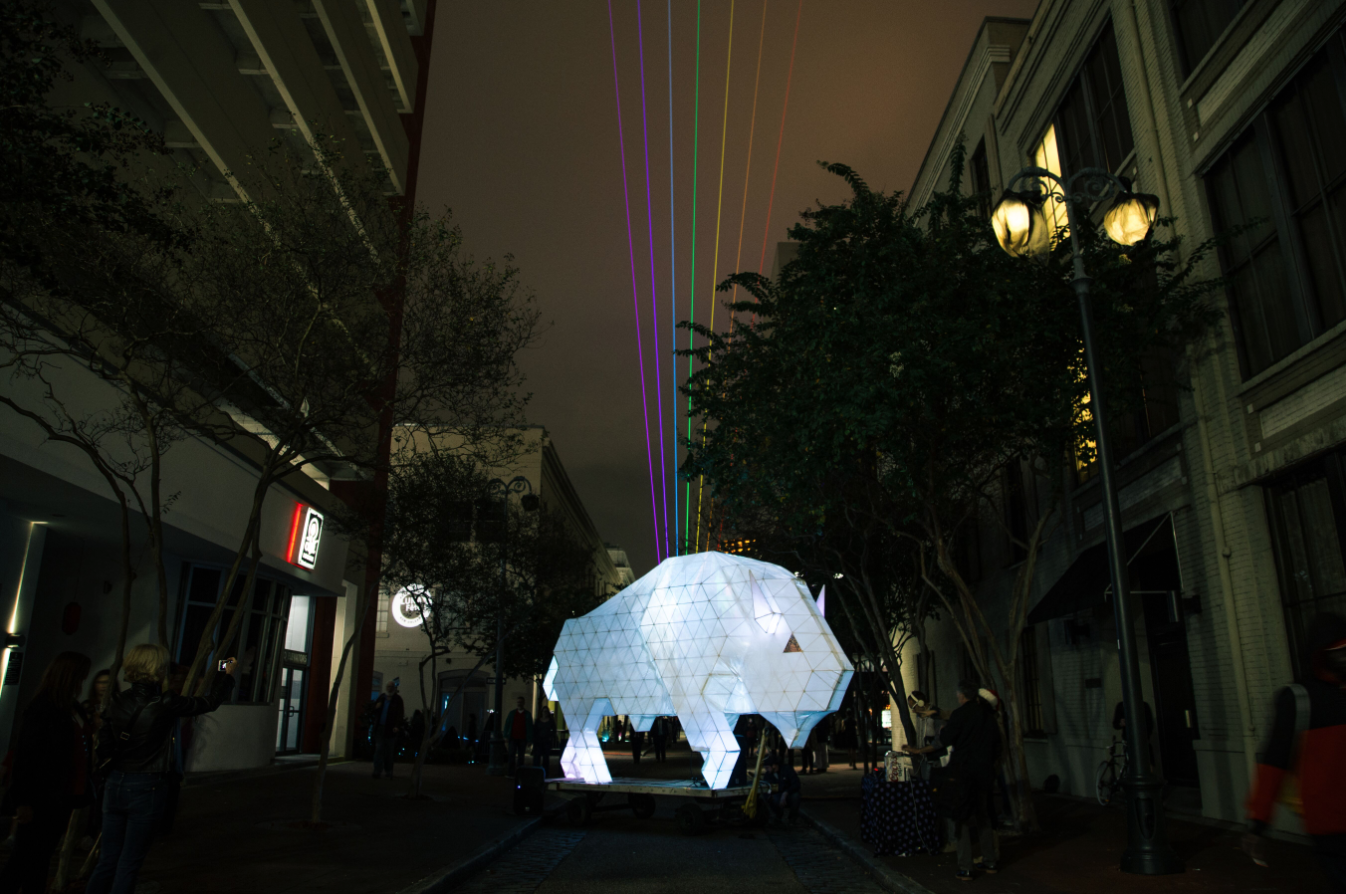 “Luna Fete is the love child of New Orleans’ booming art community and its burgeoning high-tech industry. The Arts Council of New Orleans established the Euro-style light-art festival three years ago with plans to expand the radiant nighttime display by the tricentennial in 2018. This year’s fest in the CBD, is the best so far, by far.”