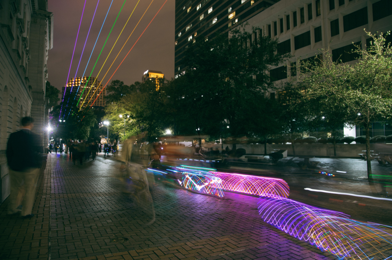 “Global Rainbow an array of seven powerful laser beams, sliced through the New Orleans night sky... as part of the Arts Council of New Orleans’ annual LUNA Fete.”